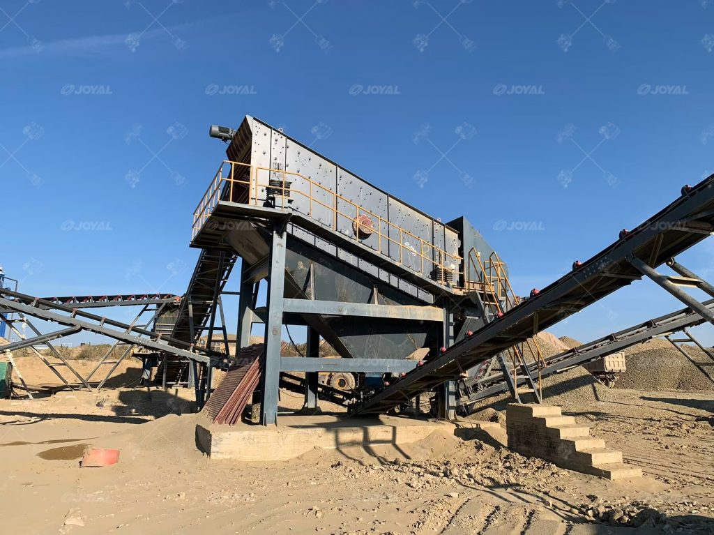 (3)细粉碎的物料由皮带输送机送到振动筛进行筛分,筛选出不同规格的石材。满足要求的石材由皮带输送机发送到材料堆,而不符合要求的材料将被送到皮带输送机、冲击式破碎机再次被击碎。根据客户的特定需要,可以合并产品的粒度分类。